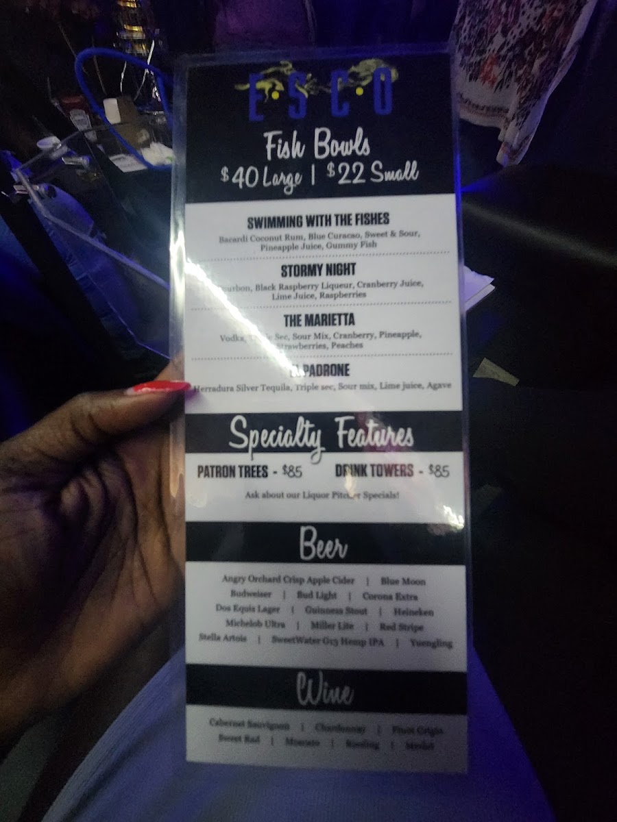 “ Checked out Esco lounge for the first time recently. When I say 10/10! Our waitress, Keeda, was EXCELLENT! Very welcoming, very attentive, very kind! The food was DELICIOUS! I got a mocktail and was thoroughly impressed. The music was amazing old school jams and consistent and every tv had content I was purely entertained by. I definitely can’t wait to visit again! Also, HH is the best time to go! Great job! ”